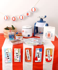 ホームパーティやアウトドアで夏祭り風の装飾が楽しめる提灯ガーランドや屋台メニューポップ、氷タペストリーなども登場する。