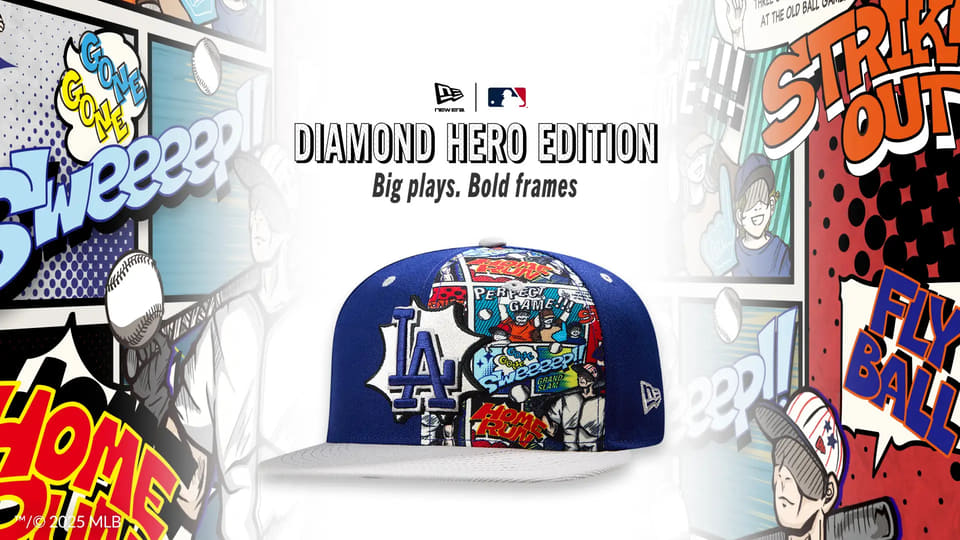 ニューエラ、アメコミ風デザインのMLBチームキャップ。ドジャースなど8球団