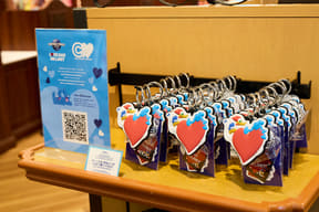 ラインアップは計6種類で、Tシャツ3種(M~XL、各5400円)、ホッケーシャツ1種(6500円)、キャップ1種(5900円)、キーチェーン1種(2900円)。“ファッションを楽しむことが、子どもたちの笑顔につながる”をチャリティコンセプトに、メインアートの赤いハートやUSJのキャラクター「ウッディー・ウッドペッカー」、コイン・パーキング・デリバリー氏のアイコンである青いキャラクター「白井さん」をデザインしている。