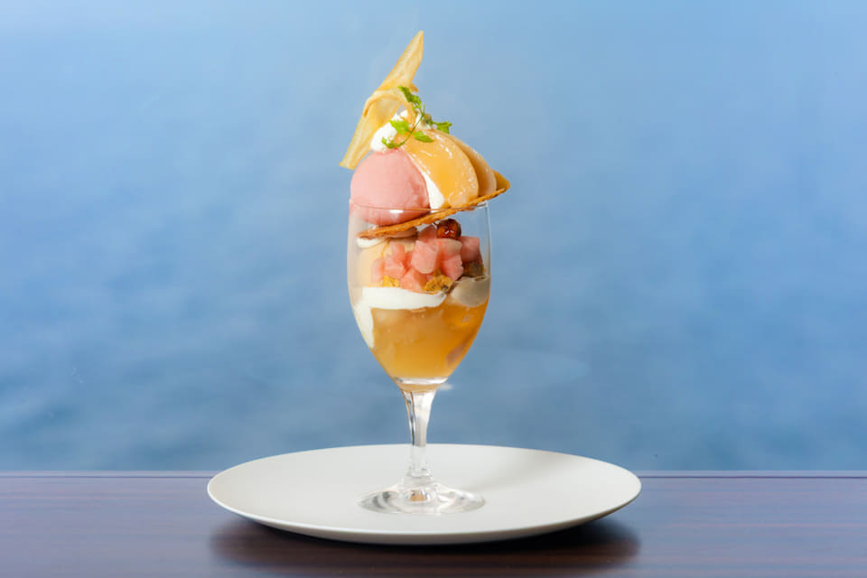 ホテルニューアカオ(静岡県熱海市熱海1993-65)は、夏季限定スイーツ「桃のパフェ」を併設の絶景カフェ「Restaurant&Sweets 花の妖精」で提供している。価格は2000円で、販売期間は8月31日まで。
