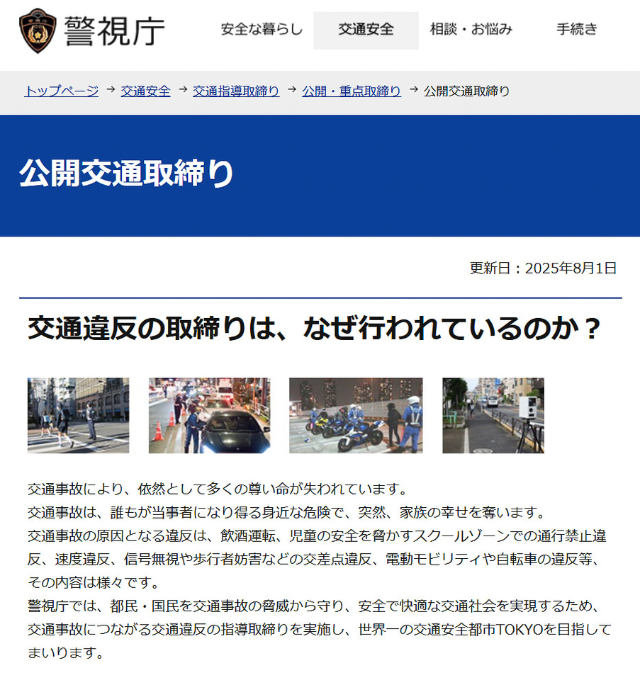 警視庁、8月の速度違反・重点取り締まり場所一覧