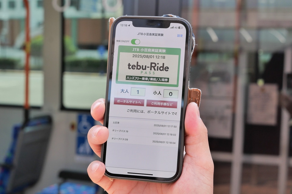 JTBと日立製作所は、デジタルチケットによる新たな周遊企画券サービス「tebu-Ride PASS(テブライドパス)」の実証実験を、香川県小豆島で8月1日~10月31日に実施している。