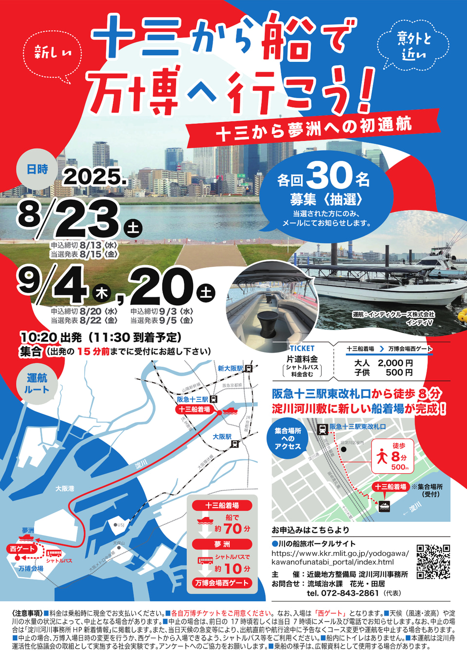 8 月23 日(土) 9月4日(木) 9月20日(土)に十三発・夢洲行きの船を運航。