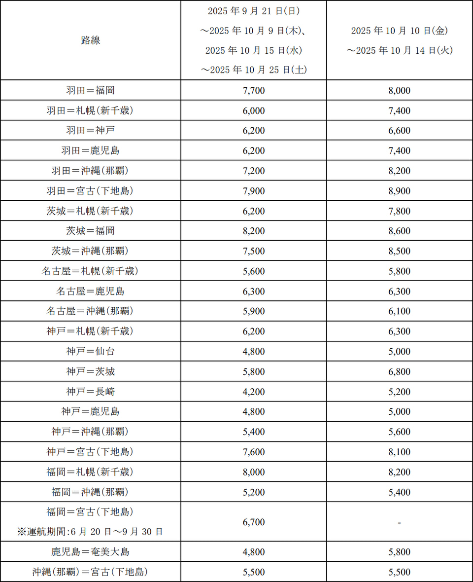 スカイマークは、若年層向け新運賃「BonvoYoung」(U25割)を8月7日11時に発売する。座席数限定で、対象搭乗期間は9月21日~10月25日。