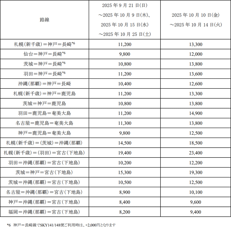 従来の最安運賃「いま得」よりさらにお得な場合もあり、例えば羽田~福岡線は7700円~(9000円~)、神戸~長崎線は4200円~(5200円~)となっている。