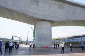 JR東海は8月5日、リニア中央新幹線 品川~名古屋間の開業に向けて山梨県中央市・南アルプス市地内で建設を進めている「釜無川橋りょう」と「常永川橋りょう」の工事現場を初めて報道陣に公開した。