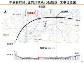 JR身延線 小井川駅から西へ約1.5km、新設されるリニア山梨県駅からは西へ約5kmほど先の地点を流れる2つの河川にまたがる橋りょう(河川橋)で、常永川橋りょうは延長225m、釜無川橋りょうはリニア中央新幹線 品川~名古屋間で最も長い橋りょうとなる延長754.2mにおよぶ。