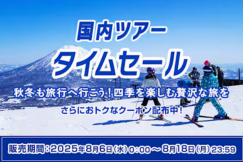 ANAは、年末年始も対象の「国内ツアー(航空券+宿泊)タイムセール」を8月6日0時~18日23時59分に実施する。