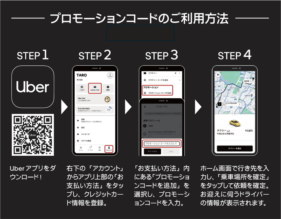 いずれもプロモーションコード(国内 JAUBAUG25、アメリカ JALPSU25、台湾 JALPST25、韓国 JALPSK25)をアプリ内で入力したうえで配車を完了する必要がある。