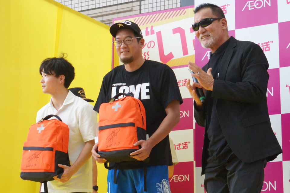 防災バッグの代わりにキャリーケースを。イオン「いざ活」イベントで蝶野正洋が提案「パッキング感覚で備えよう」