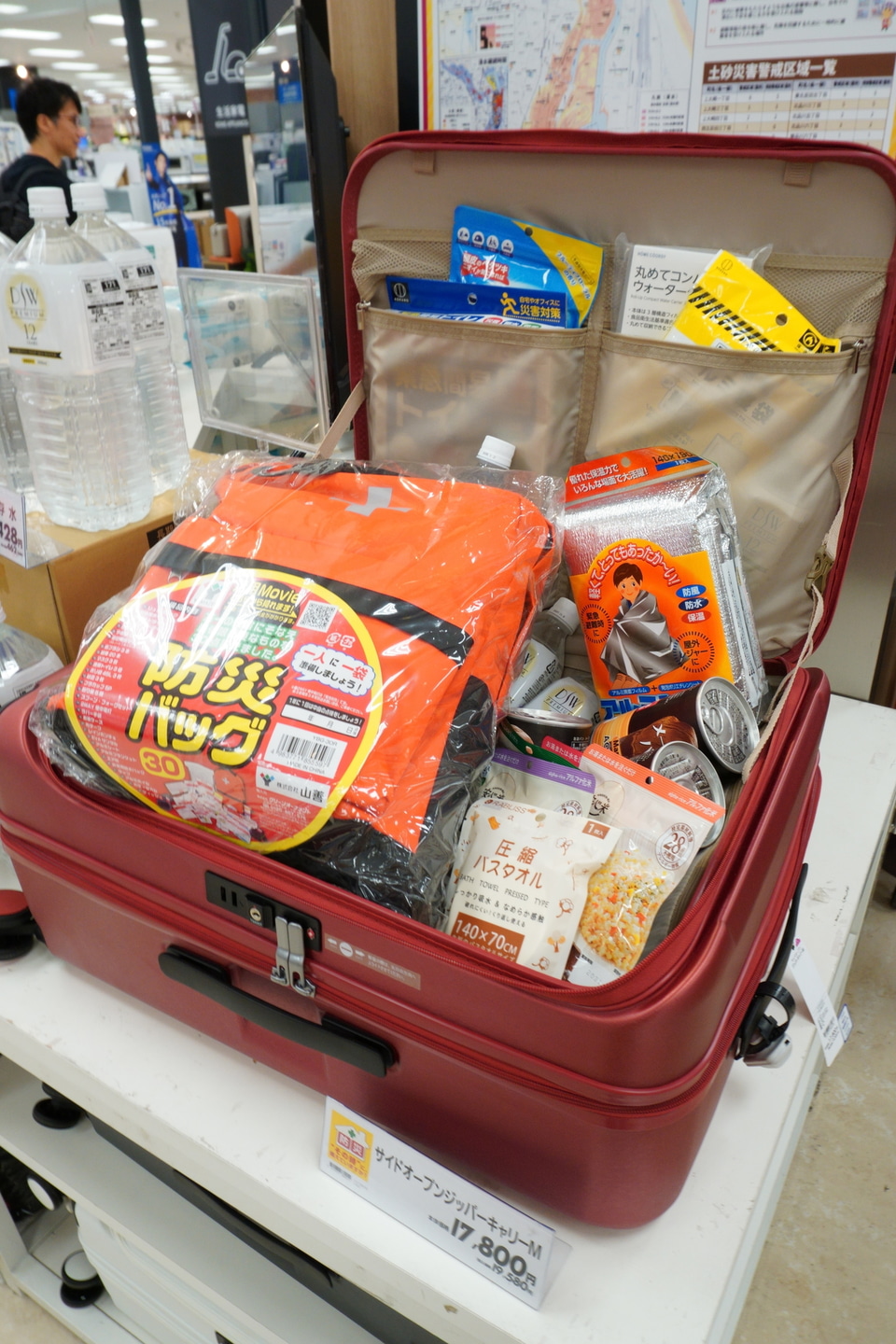 売り場では、日常での備えとして「防災キャリーケース」「防災ポーチ」「防災ギフト」を提案する。