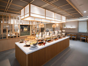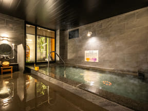 朝食には、県産コシヒカリやとやまの牛乳、カウヒー、四十物昆布の上黒とろろといったご当地メニューを用意。男女別大浴場として天然温泉の「松川の湯」を設けている。