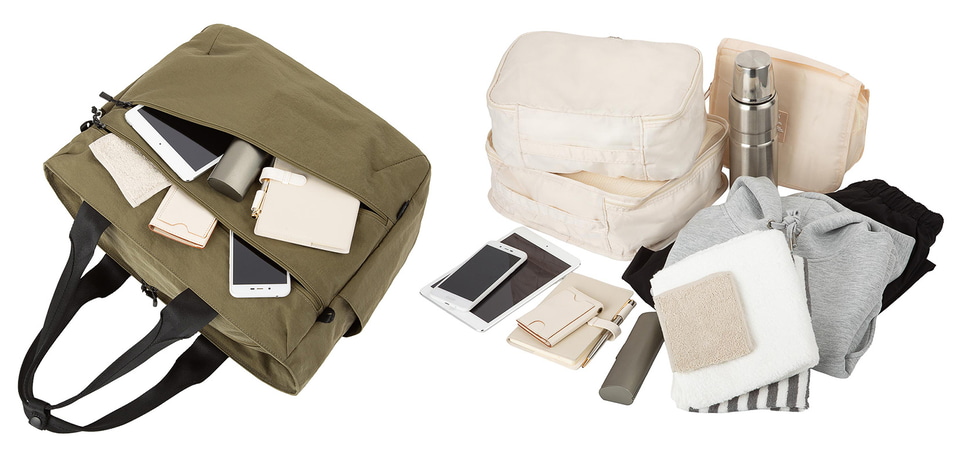 また、通気性の高いエアメッシュで蒸れを軽減した背面とショルダーハーネスに加え、着脱可能なチェストベルトで体へのフィット感を向上させた。内装には「オーガナイザーポケット」を、トート・リュック型には13.3インチ対応の「PC収納スペース」や、スーツケースのプルドライブハンドルに固定できる「セットアップベルト」を装備している。カラーはブラックとカーキの2色展開。