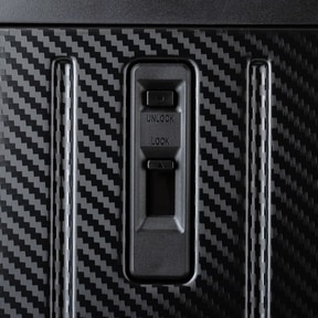 足まわりには、静音性と耐久性のある日乃本錠前製のダブルキャスター「SILENT RUN」を装備。ボディの背面にあるレバーを上げるとキャスターにストッパーがかかり、バスや電車などで不意に転がるのを防ぐことができる。さらに、スマホスタンドや充電用のUSB Type-A/Type-Cポートなど、移動中の快適性を高める機能を備えた。