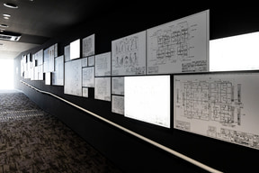 まず、目に入るのが商品企画書が並ぶデザインロード。取材では眺める程度の時間しかなかったのだが、普段目にすることはないモノだけに、本来ならゆっくりと見ていたいところ。そこを過ぎたところにあるのが「スタディエリア」。プラモデルができるまでの一連の工程とともに、同社のモノづくりへのコダワリが垣間見える展示だ。