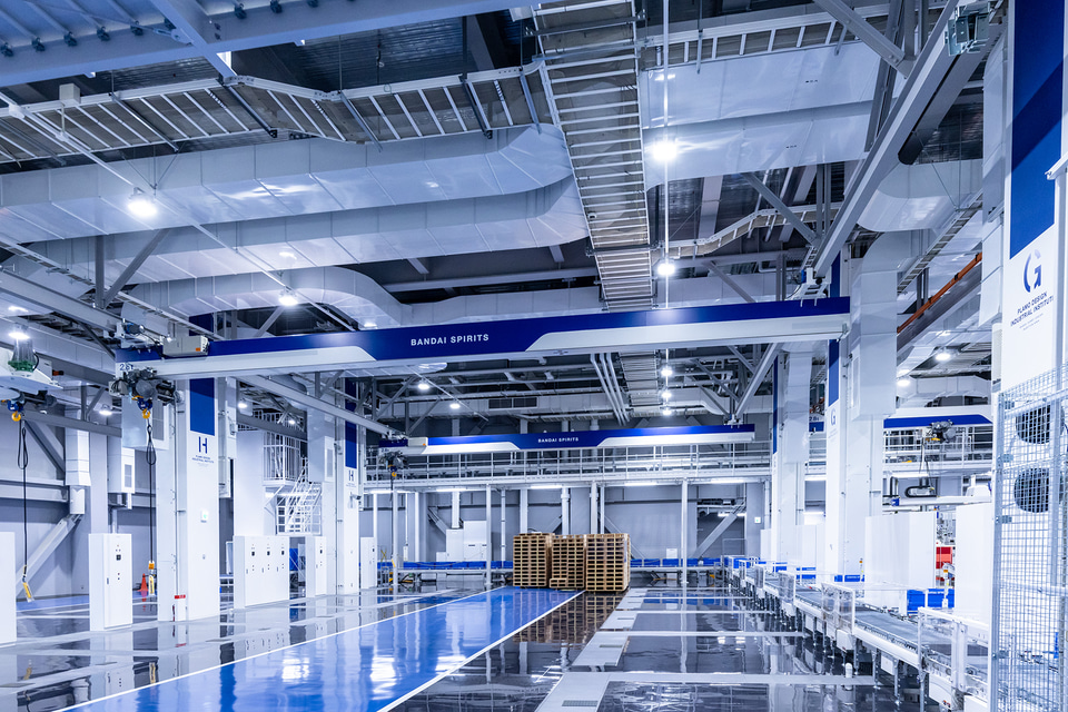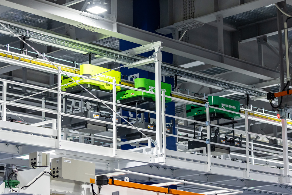 プラスチック成形だけでなくパッケージ箱へ製品を封入し出荷するまでをオールインワンで行なうことで安定的な生産体制を確保。天井搬送台車や自動倉庫など「人の手のかからない工場内物流」を実現するほか、オリジナルの「4色射出成型機」を使用することで、作りやすさやカラー再現の追及を行なうとともに、使用電力や運送コストなど環境負荷低減を実現している。2026年度の新工場本格稼働時にはプラモデル事業全体で2023年度比約35%の増産が可能になる見込み。