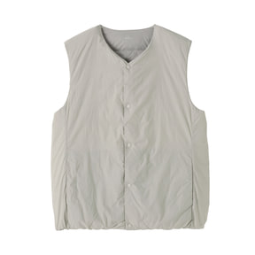 7アイテム中、特にベストやノーカラージャケットはほかのアウターの下に重ね着するインナーダウンとしても使いやすい仕上がりで、表地を三層構造のステッチレス仕様にしたことで縫い目からのダウンの吹き出しや毛羽立ちを防ぐほか、水分や冷気の侵入も防ぎやすくなっているという。