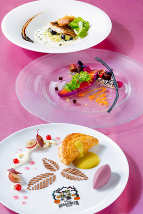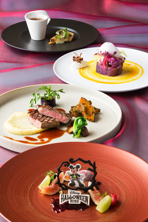 さらに、東京ディズニーランドホテルにて創作料理を提供するカンナでも「“ディズニー・ハロウィーン”プレシャスカンナ(ランチコース)」(7000円)や、「“ディズニー・ハロウィーン”スタイリッシュカンナ(ディナーコース)」(1万5000円)を提供。