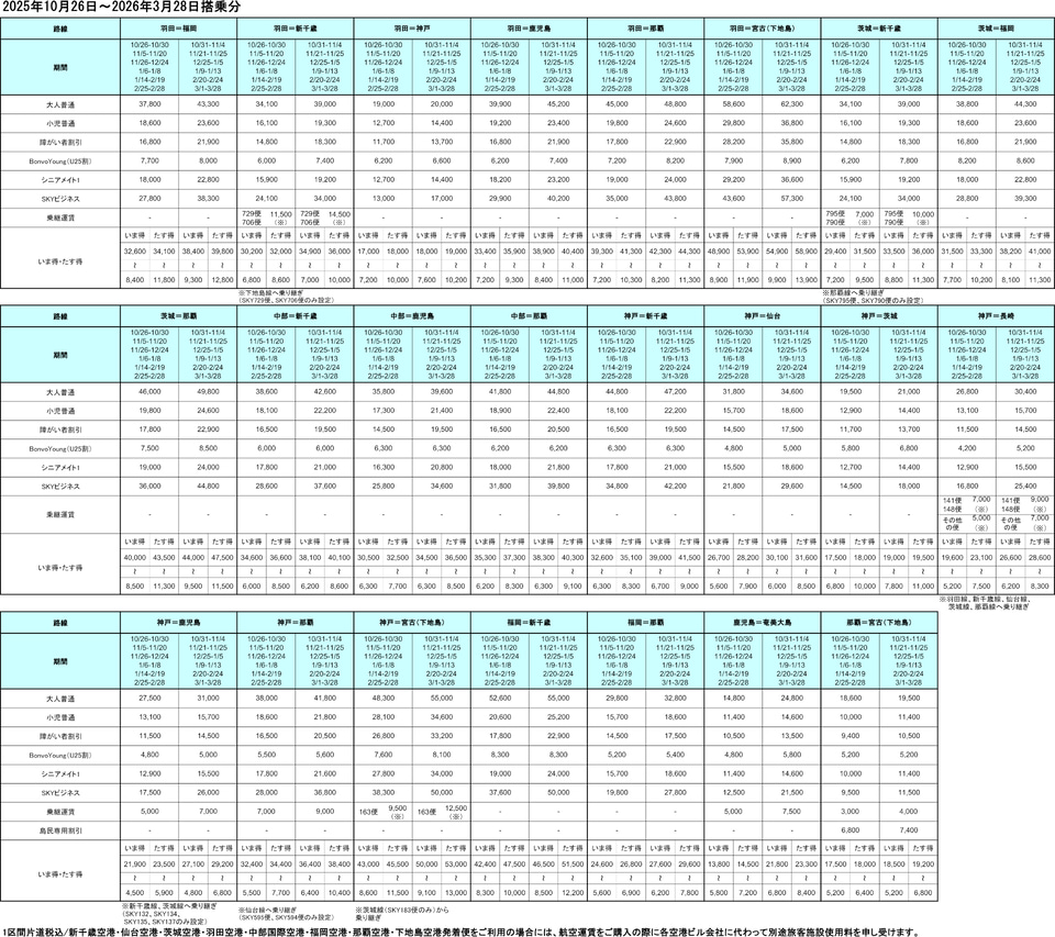 スカイマークは、2025年度冬ダイヤ(10月26日~2026年3月28日)の航空券を8月26日7時に発売する。国内23路線が対象。