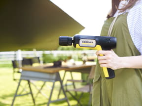 6月に応援購入サービス「Makuake」で先行販売し、約20分で2500台が完売した人気商品。旅行やアウトドアなどの外出先に気軽に持ち運び、ケルヒャーの高圧洗浄を「思ったらすぐ使える」ようにと開発したもので、ポケットにも収まる手のひらサイズながら、最大許容圧力1.5MPaのパワフルな洗浄力(一般的な水道の約7.5倍相当)を実現。スポーツやキャンプ、釣り、自転車といったアウトドアシーンの汚れはもちろん、衣類に入り込んだ泥汚れもこすらずに高圧の水流で洗い落とすことができるため、洗濯前の予洗いにも活用できる。