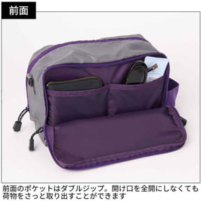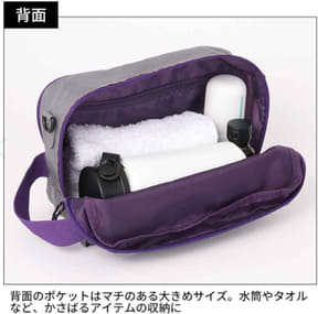 手持ちバッグのように持ち歩きできるハンドルを搭載するほか、お洒落なロープデザインのショルダーストラップが付属しており、肩掛けポシェットとしても使える。