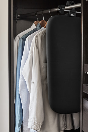 ティファール、衣類のスチームがけを吊り下げ・平置きでできる「2WAY スチーム&アイロンボード」