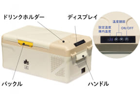 電源の電圧が低下すると自動的に保冷が停止する車載バッテリー保護機能付きで、ドライブ中に使用してもバッテリー上がりを防ぐ。高性能断熱材である発泡PUフォームを採用しており、電源なしでもクーラーボックスとして使用できる。