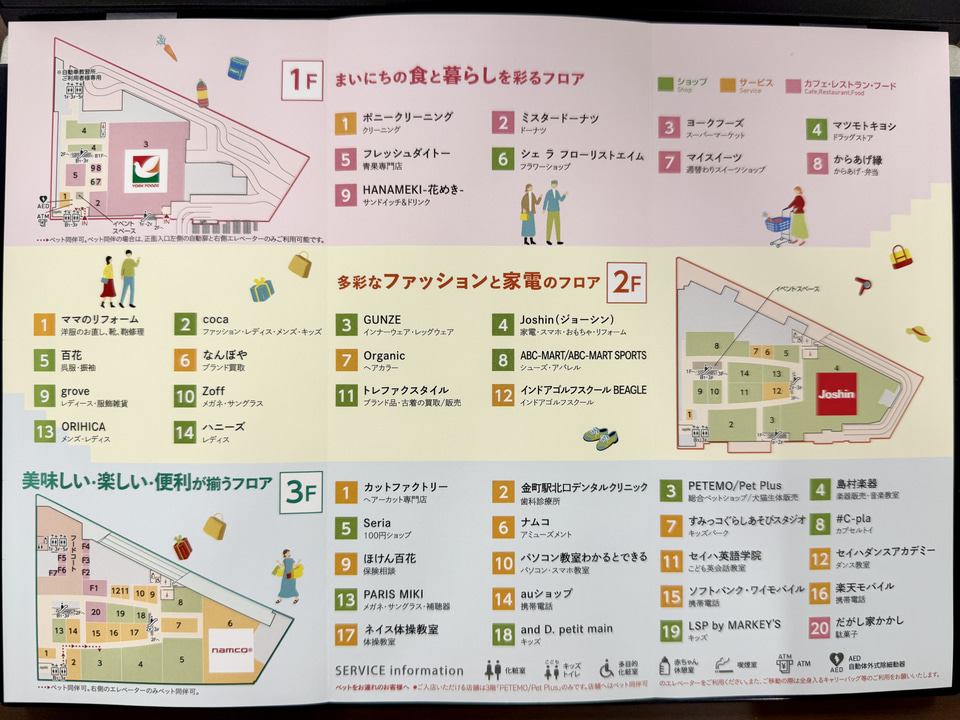 また、暮らしに便利な100円ショップ「Seria(セリア)」、総合ペットショップ「PETEMO(ペテモ)」、メガネ・サングラス・補聴器「PARIS MIKI(パリミキ)」なども出店。体操、ダンス、英語、PC、音楽といったスクール施設も充実している。