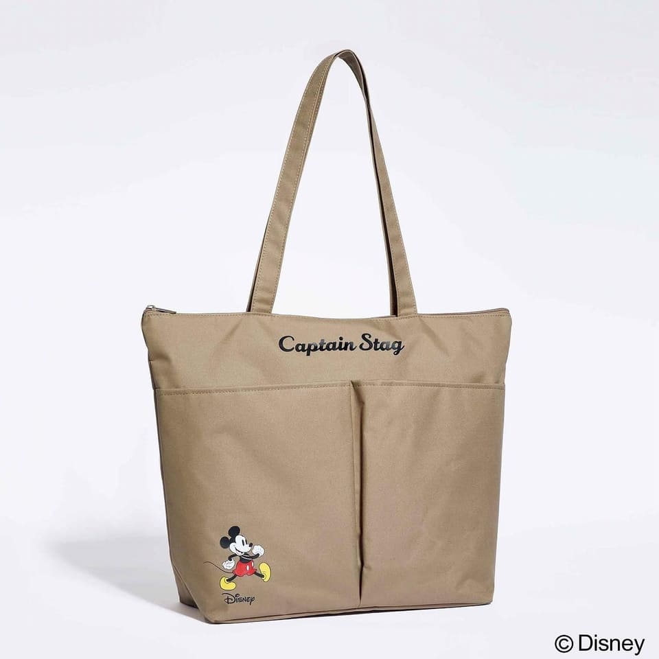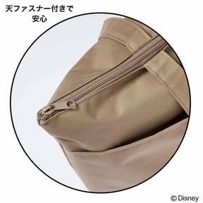 中身を隠せる天ファスナーに、肩掛けしやすい長さのハンドルもポイント。秋を先取りするようなシックな色合いに、クラシカルなミッキーをあしらったデザインは、これからのレジャーや毎日の買い物に活用したい。