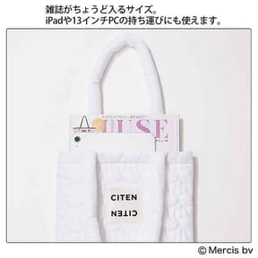 増刊号の付録は、ファッションブランド「CITEN(シテン)」のアイコン商品であるキルティングバッグが「ミッフィー」型キルトで登場。マットなホワイトカラーのふわもこ生地でカジュアルながらほどよく洒落感をプラスし、アクセントにはひょっこりのぞきこむミッフィーのお顔タグをあしらう。