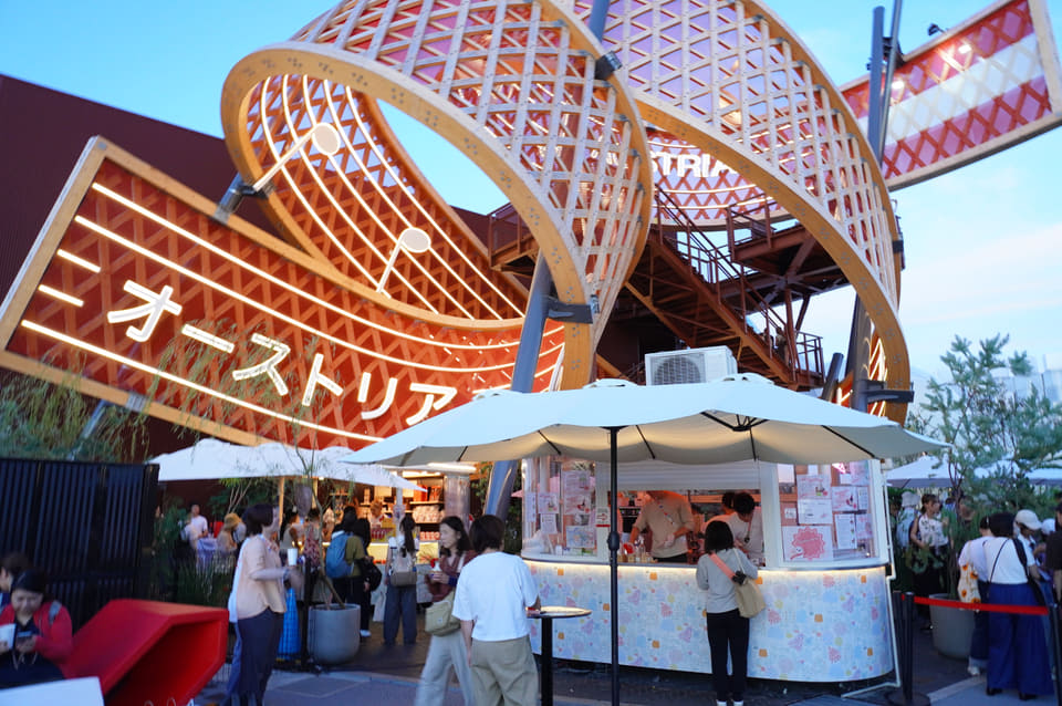 クラシック音楽で有名なオーストリアでは「未来を作曲」をテーマにした展示を行なう。楽譜と音符をモチーフにした螺旋状のオブジェが特徴的なパビリオン館内にはレストランも併設しているが、サクっとひと休みしたいときにはぜひ、パビリオン前に出店しているカフェキオスク「Flavors To Go」に立ち寄ってみてほしい。