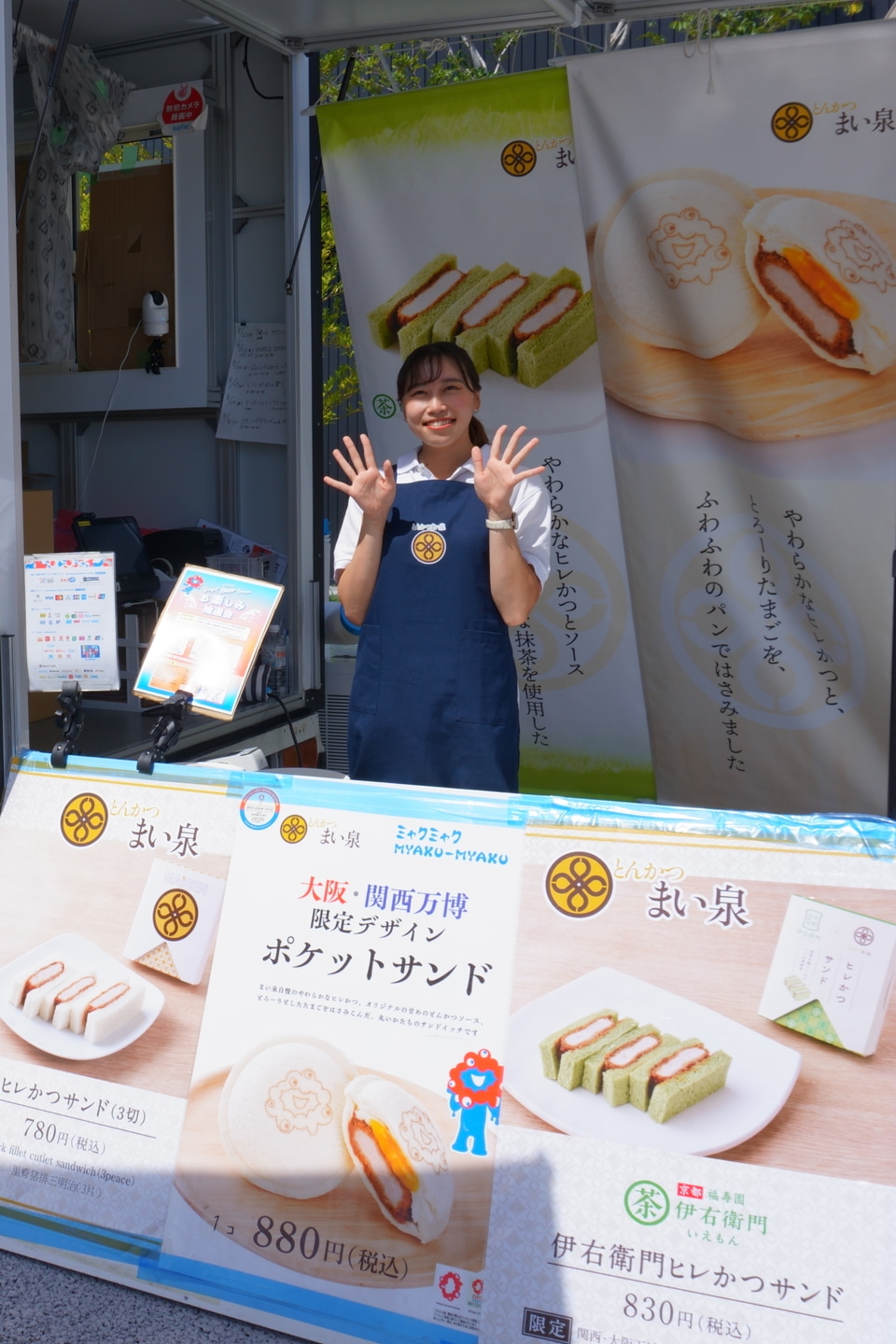まい泉のポケットサンド(通常ver.)は全国の店舗で購入できるが、ミャクミャクデザインの焼き印は万博会場内および「とんかつ まい泉」一部店舗限定。