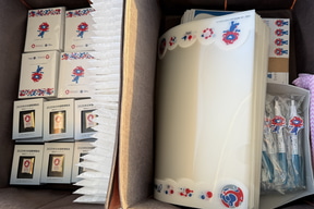 「あたり」の景品はピンバッジ、ウェットティッシュ、ミャクミャクボールペン、クリアファイル、メモ帳、ミャクミャクステッカーの6種類。