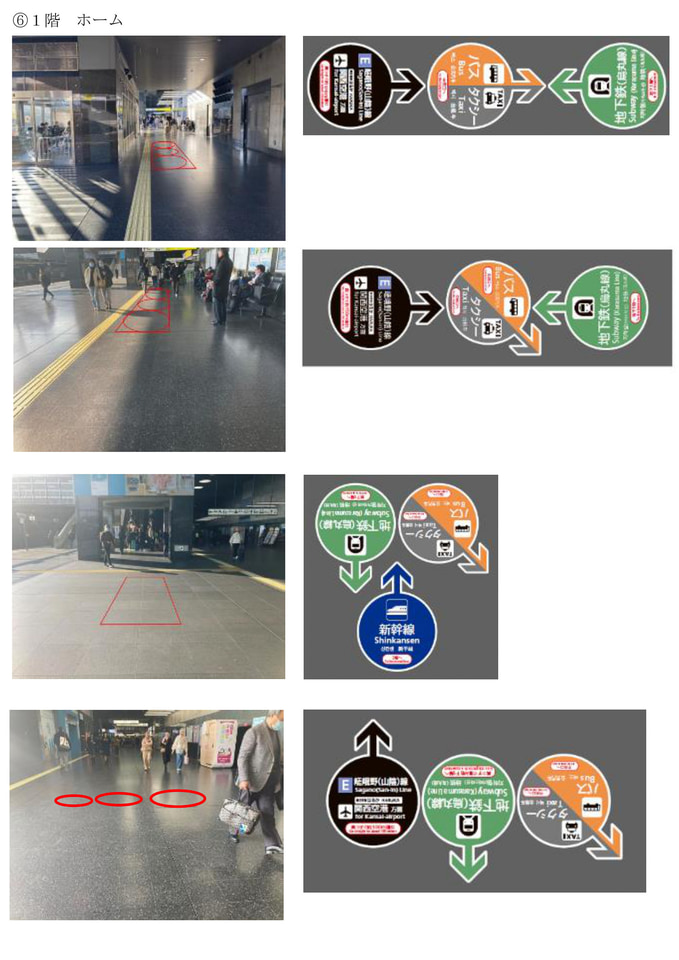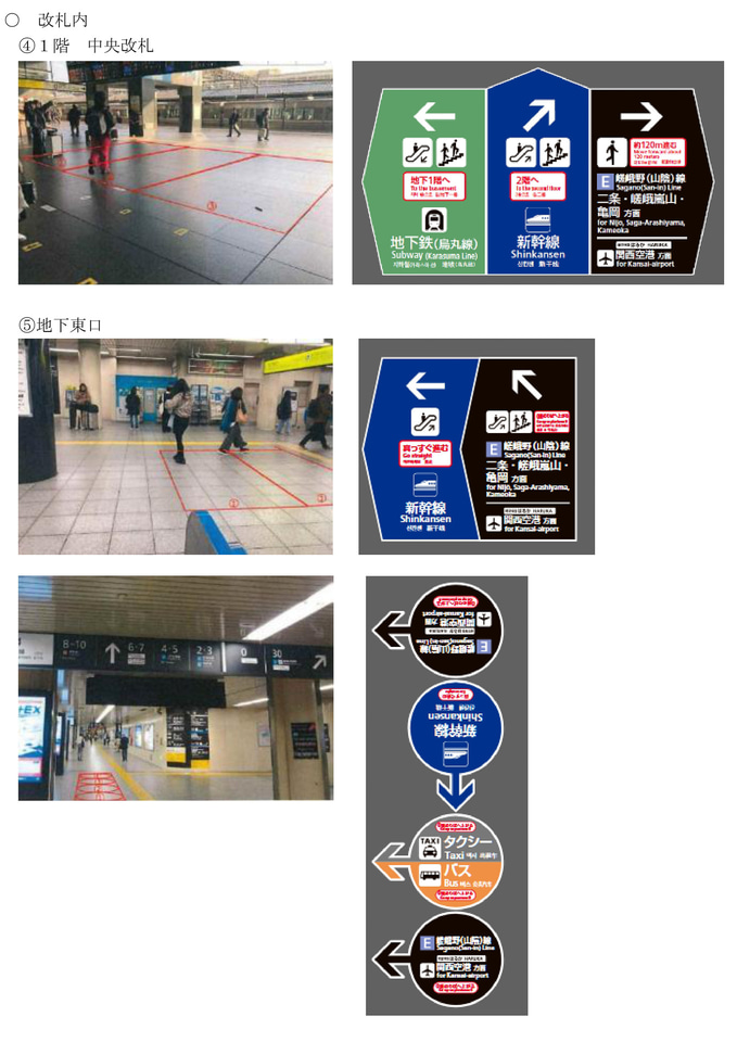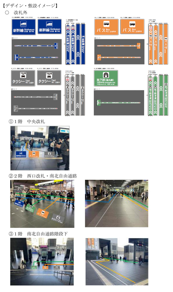 JR京都駅、新幹線・バス・タクシー・地下鉄の動線をピクトグラムと色分けで示す案内サインを導入