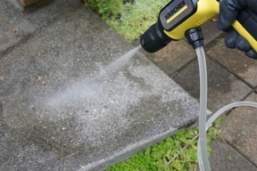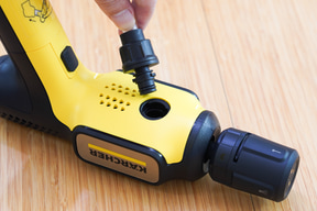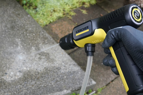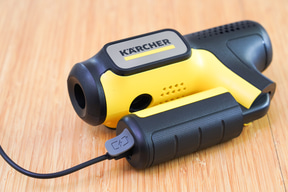 コンパクトゆえ高圧洗浄機の汚れ落とし能力の指標と言ってよい最大水圧は、1.5MPaとやや低めに抑えられている。これがどの程度使えるのか気になるところだ。同社では「帰るまえに、10秒ケルヒャー」というキャッチフレーズで、自転車やベビーカーの汚れ落としなど玄関先などで、サッと使う用途に最適としている。