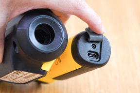 この4つのモードに対し、それぞれ「ブースト」と「エコ」の2段階のモードで強弱を切り替えることができる。スイッチは本体後ろに「ECO」と書かれており、押すとリング状のランプが「エコ」は白、「ブースト」は黄色に点灯する。ランプは炎天下では確認しにくかったが、切り替えれば水の勢いが変わるので判断できるだろう。バッテリー残量が少なくなると点滅する。またこのランプは、充電時の状態を示す用途も兼ねている。