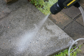 選択する水流パターンによって、汚れの落ち方はだいぶ違ってくる。多くの汚れ落としに対応するのが「標準」で、そのまま下向きにしたのが「傾斜」で床面などに当てやすくなる。一点突破型の「ポイントジェット」は、石材などにこびり付いた汚れやコケなどを強い水流で落とすのに向いている。「シャワー」は弱めの水流で軽く水に濡らす時に便利。ホースで水をまく感じに近い。