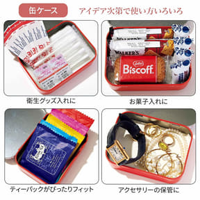 缶ケースは大人かわいい花×キティモチーフで、サイズは約11×8×2.5cm(幅×奥行き×高さ)。アクセサリー保管や絆創膏などの衛生グッズ入れ、お菓子入れやティーパック入れなど、あらゆる用途に活用できる。