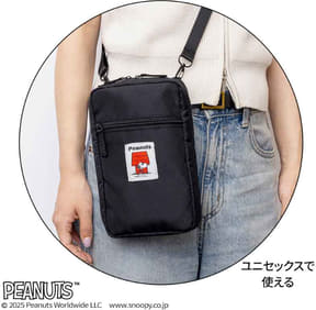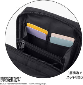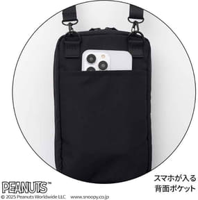 ファミマ限定「スヌーピー」お財布機能付きショルダーバッグ。深め設計でたっぷり収納、全7ポケット