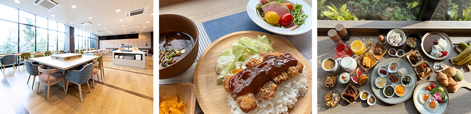 大浴場は、有馬温泉由来の医薬部外品浴用剤を使用した白濁の人工温泉「有馬 黒松の湯」で男湯にサウナを備える。朝食はレストラン「加彩」で日替わりメニューを織り交ぜたモーニングビュッフェを提供。兵庫県産こしひかりのごはんや加古川名物「かつめし」など地域の魅力を味わえるメニューも用意する。