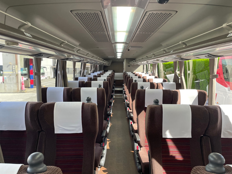 同便では、ゆったりとした10列(38人乗り)トイレ付き車両を使用。携帯電話の充電に使えるUSBポートや無料Wi-Fiも備えている。
