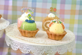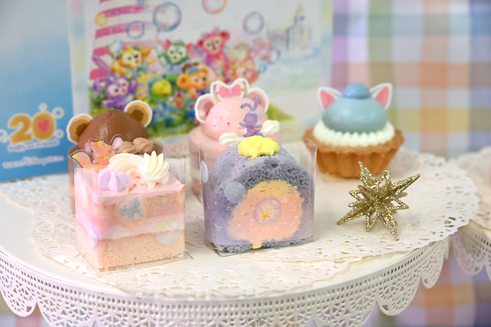 2品目は、現在東京ディズニーシー登場20周年を記念し開催中の「ダッフィー&フレンズ20周年:カラフルハピネス」と連動した「アソーテッドミニケーキ」(5000円)。全9種類入り。