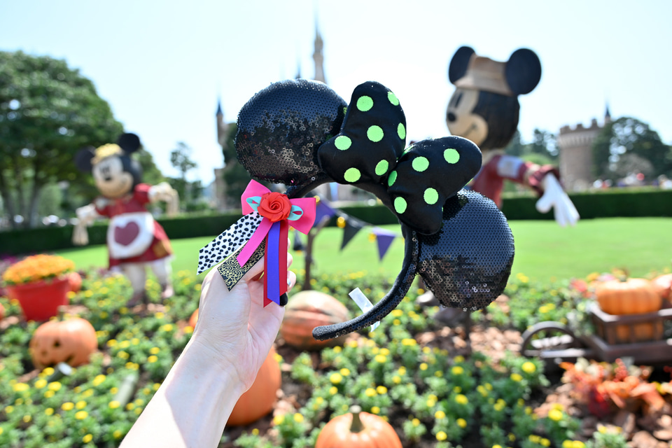 パーク滞在をより盛り上げる身につけグッズもマストで手に入れたいところ。先ほどのパレードに出演するヴィランズダンサーをモチーフとした「リング」(1800円)やグリーンとブラックがクールな「カチューシャ」(2400円)でハロウィーンコーデに。