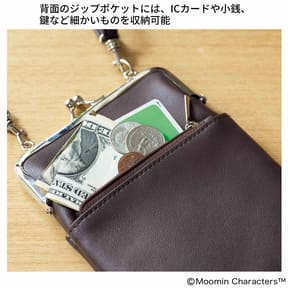 特別付録は「ムーミン」のがま口スマホショルダー&バッグチャームの2点セット。フロントポケットからスマホをさっと取り出せるがま口ショルダーは、リトルミイのうしろ姿を型押しであしらった一見シンプルなデザインだが、裏地は大人ピンクのコミックス柄で遊び心アリ。背面のジップポケットには、ICカードや小銭、鍵など細かいものを収納できる。また、ショルダーストラップを外せばポーチとしても使える2way仕様になっている。サイズは約12×2×19cm(幅×奥行き×高さ)。