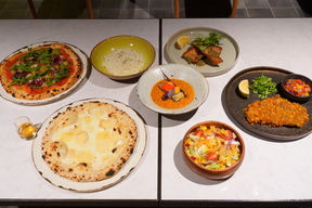 メインロビーから続く3階には、新たなレストラン「ALL DAY DINING FUDO」をオープンする。看板メニューは「石窯ピザ」で、八芳園と連携協定を結ぶ自治体の生産者から直送された厳選素材を使用しているとのこと。