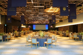 会場: 約520m2、収容人数 着席(円卓)256名/立食300名
