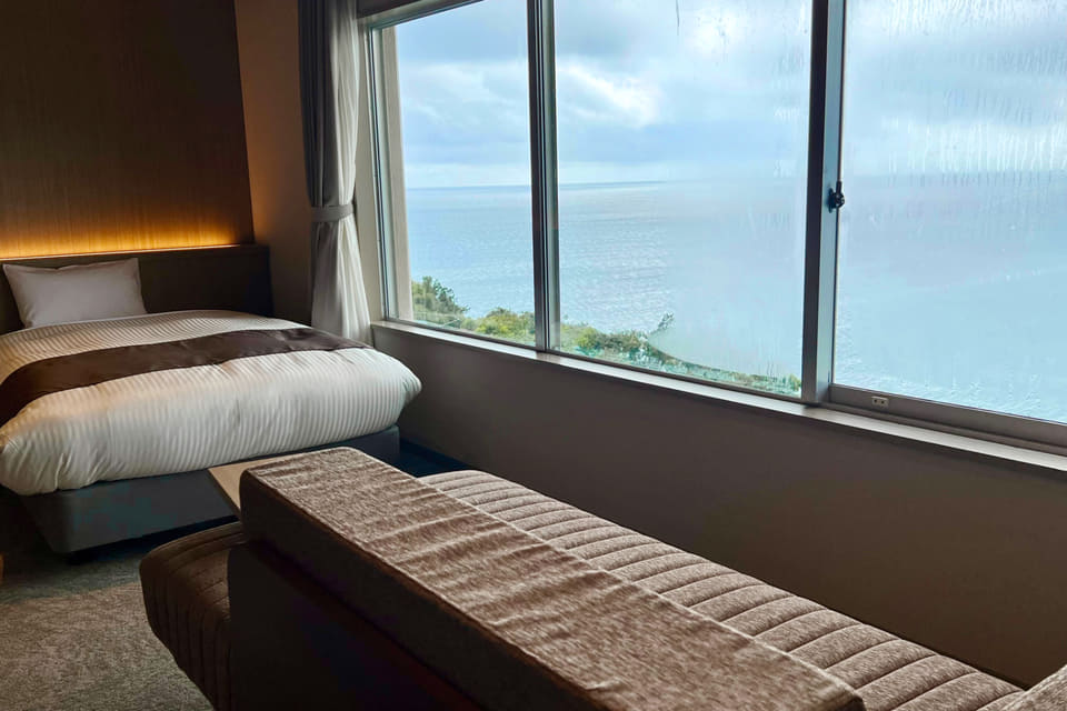 なかでも和の温かみと洋の機能性をいいとこどりした「スタンダード和洋室ツイン」と3室限定「露天風呂付客室」のタイプは、広々とした室内に大きなベッドを配置し、畳の小上がりスペースや海の絶景を堪能できるソファ兼デイベッドを完備している。小さな子供連れやプライベート性を重視したい派にもおすすめだ。