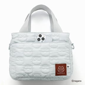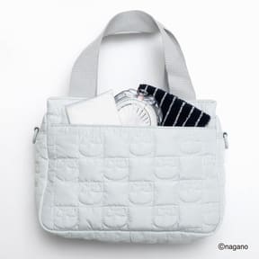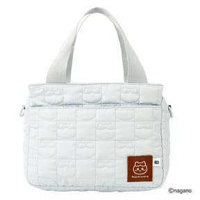 手持ちと肩掛けの2通りが使えるキルティングバッグ。ちいかわはくすみピンク、ハチワレはくすみブルー、うさぎはくすみイエローを基調としており、よく見るとそれぞれのキャラクター型が隠れた生地もポイントになっている。
