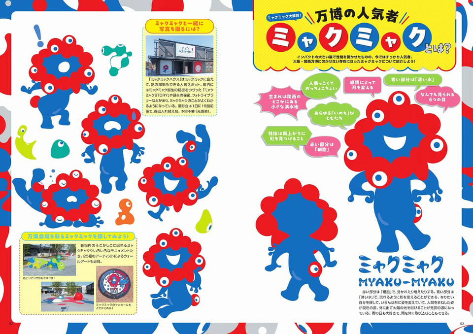 誌面では「ミャクミャクの正体を探る」「万博ミャクミャクスポットめぐり」「ミャクミャクコーデスナップ集」を掲載するほか、売り切れ御免のオフィシャルグッズガイドやぬりえページも付いてくる。