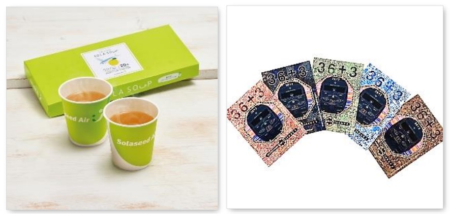 期間中にソラシドエアを利用し、36ぷらす3の金曜日ルート「黒の路」(鹿児島中央駅~宮崎駅)または土曜日ルート「緑の路」(宮崎空港駅・宮崎駅~大分駅・別府駅)に乗車した人を対象に、搭乗記念グッズとしてソラシドエア機内で提供している「ソラシド ソラスープ(個包装)」と36ぷらす3オリジナルステッカー(1セット5枚)をプレゼントする。